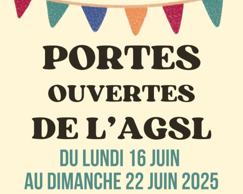 Venez nous rencontrer et découvrir les activités de l'AGSL pendant la semaine des Portes Ouvertes de l'AGSL du lundi 16 juin au dimanche 22 juin 2025.